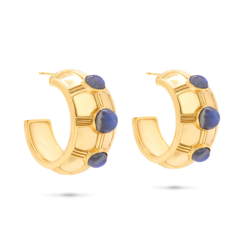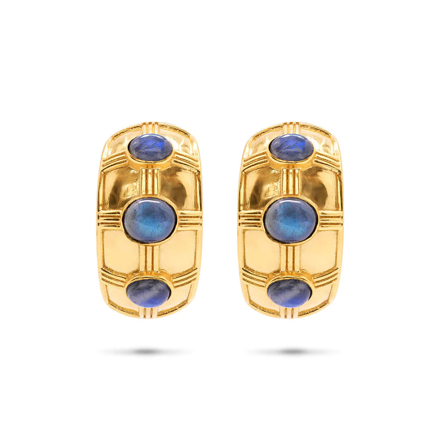 Renowned for her intelligence, influence and beauty, these namesake earrings carry her powerful allure with captivating blue labradorite stones that glow with hidden depths and translate easily from day to evening.