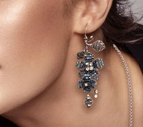 Indulge in timeless allure with the Classic Double Bloom Hanging Earrings. Each pair adorned with delicate gold leaves. These earrings seamlessly transition from casual elegance to evening glamour. Meticulously handcrafted with precision, they feature a shimmering array of crystals and vintage rhinestones.