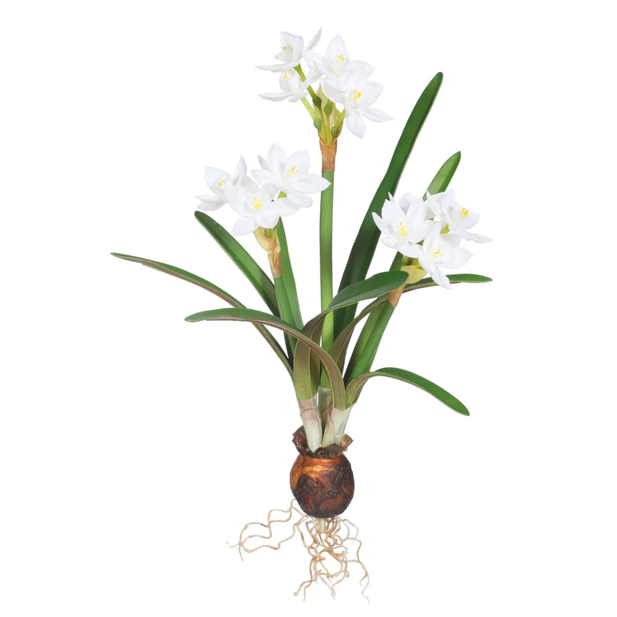 Add timeless elegance to your holiday decor with this lifelike faux paperwhite, complete with a realistic bulb and delicate white blooms. Standing 13 inches tall, it captures the graceful beauty of a fresh-forced paperwhite without the maintenance. Nestle it into a decorative cachepot, place it on a mantel, or tuck it into a festive tablescape—its bright green foliage and crisp white flowers bring effortless cheer to any setting. A classic choice for winter decorating, this piece offers enduring beauty that can be reused year after year.