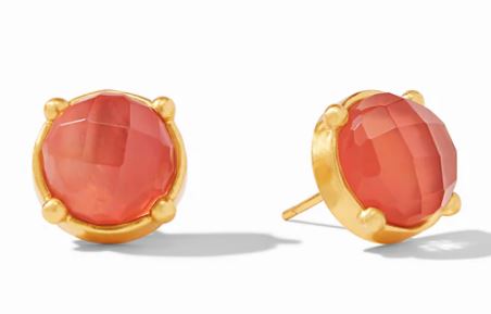 Rose cut sparkling gemstone of imported glass. Lightly hammered bezel setting with gold raised beads.