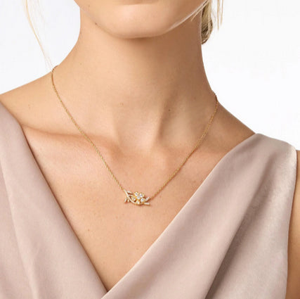 Sparkling pavé and burnished gold imbues this necklace's blossoming flower with lifelike brilliance, gently held by a delicate rope chain.