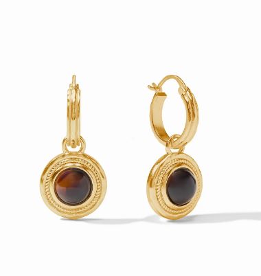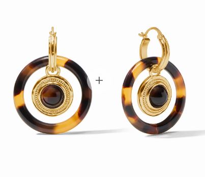 Mix, match, and flip elements to create bold silhouettes with this earring made from polished translucent tortoiseshell and lightly hammered gold with twisted wire accents.