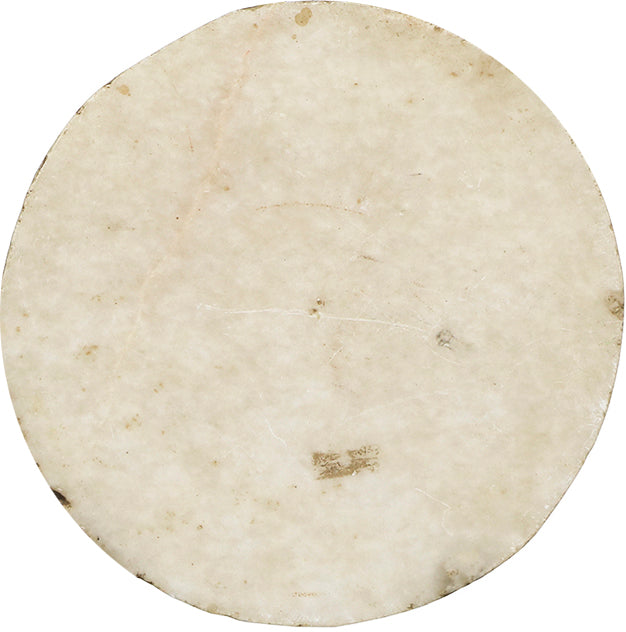 The unleavened chapati bread originated in India and continues as a staple of middle eastern, Caribbean and African cuisine. While chapati boards in India are typically round or rectangular, this vintage Marble Chapati Board is round. This marble Chapati Board can serve as a decorative accent or as a base for a pillar candle or statuary.