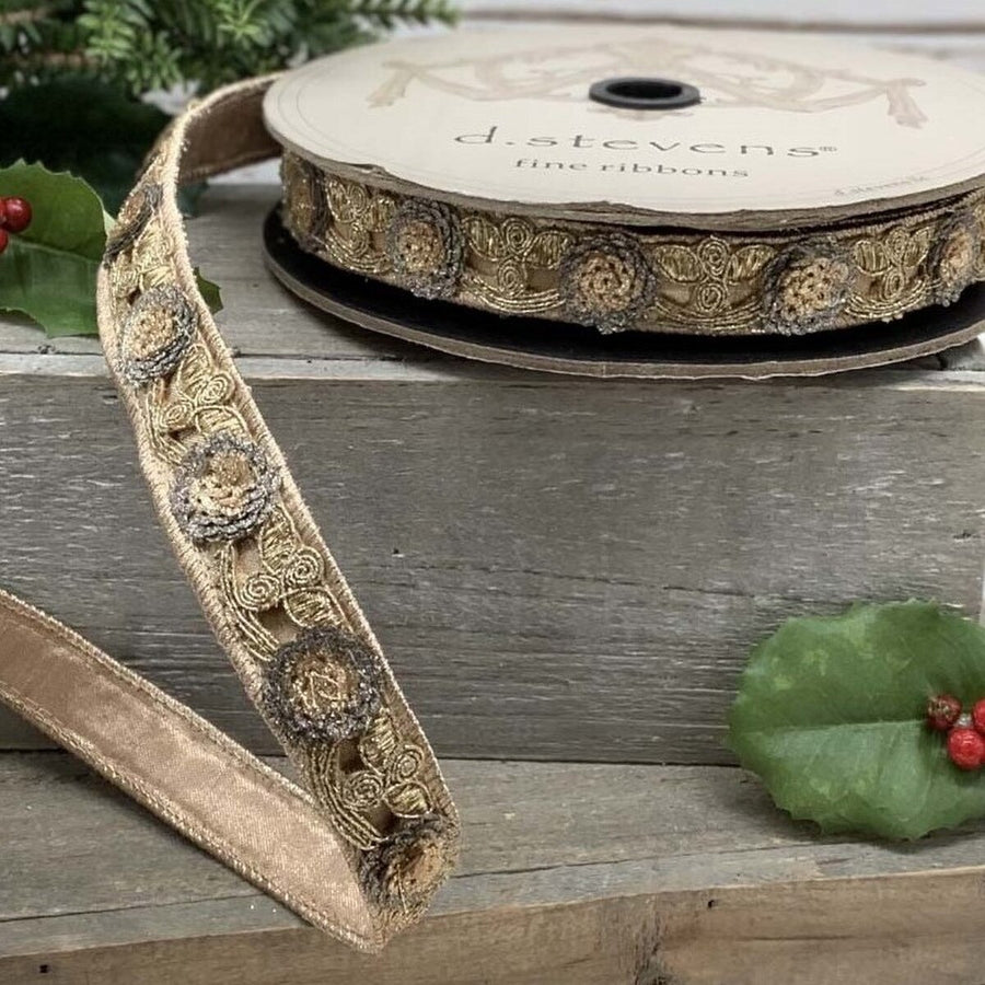 Metallic Dupion Sequin Floral Ribbon - 1 inch