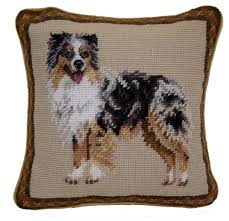 Bring warmth and charm to your space with these hand-stitched needlepoint dog pillows. Each features a beautifully detailed portrait of a beloved breed, crafted in rich, earthy tones on a soft neutral background and framed with a coordinating tapestry-style border.