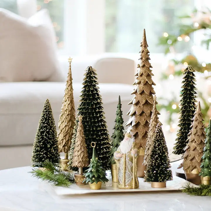 Add ornate charm to your holiday décor with this 9-inch Seville Neo Tree in rich evergreen tones. Featuring tiered branches adorned with intricate gold detailing, raised floral motifs, and shimmering accents of blue and green, this festive piece is a celebration of opulence and craftsmanship.