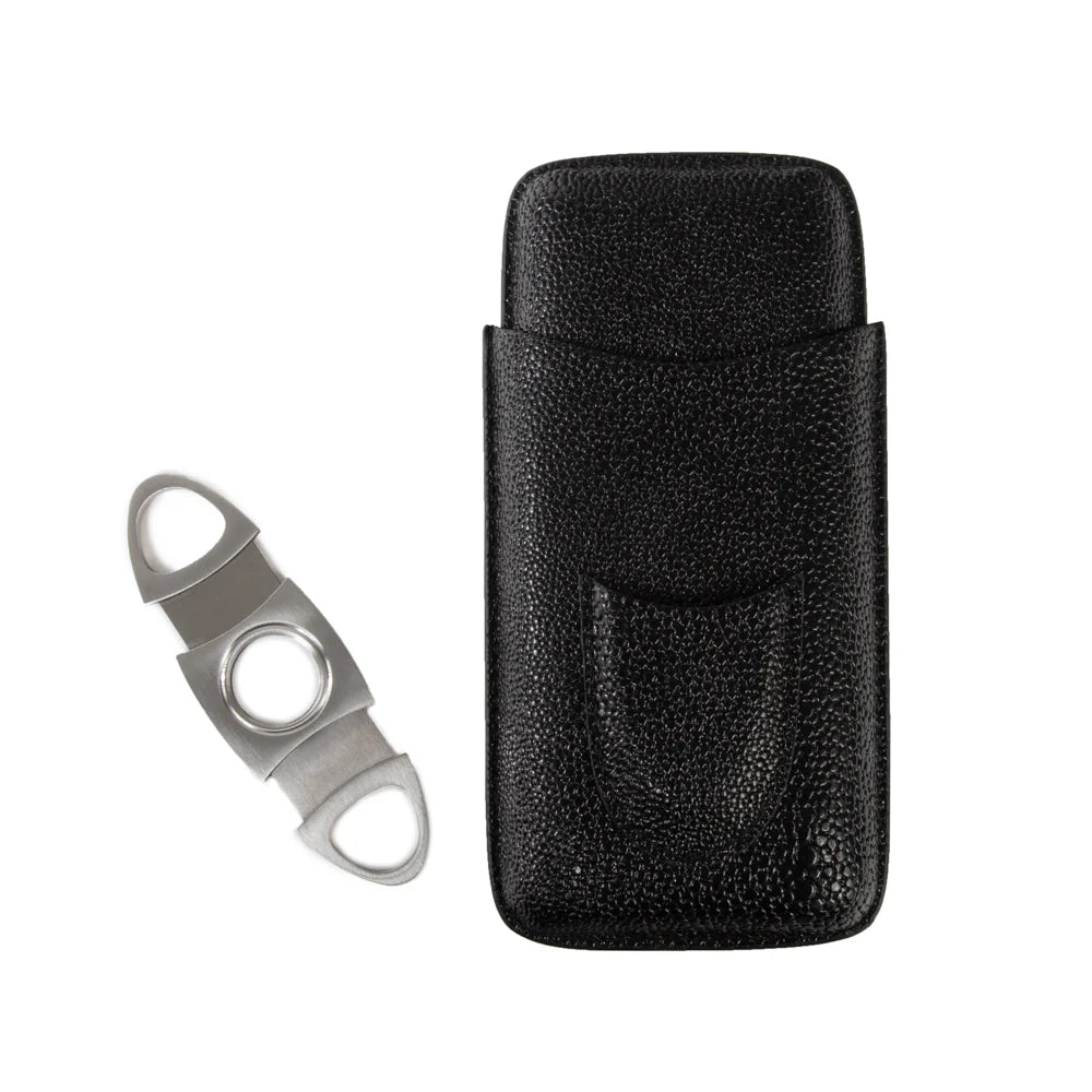 Expertly crafted for discerning aficionados, this sophisticated three-finger travel case combines premium genuine leather with distinctive stingray patterning and elegant white contrast elements. Designed for versatility, it accommodates three cigars up to 56 ring gauge with adjustable length capability while maintaining an airtight seal during transport. The integrated stainless steel cutter ensures preparation convenience. Perfect for professionals who appreciate the intersection of bold aesthetics and functional design, this case makes a statement whether in business settings or leisure environments.