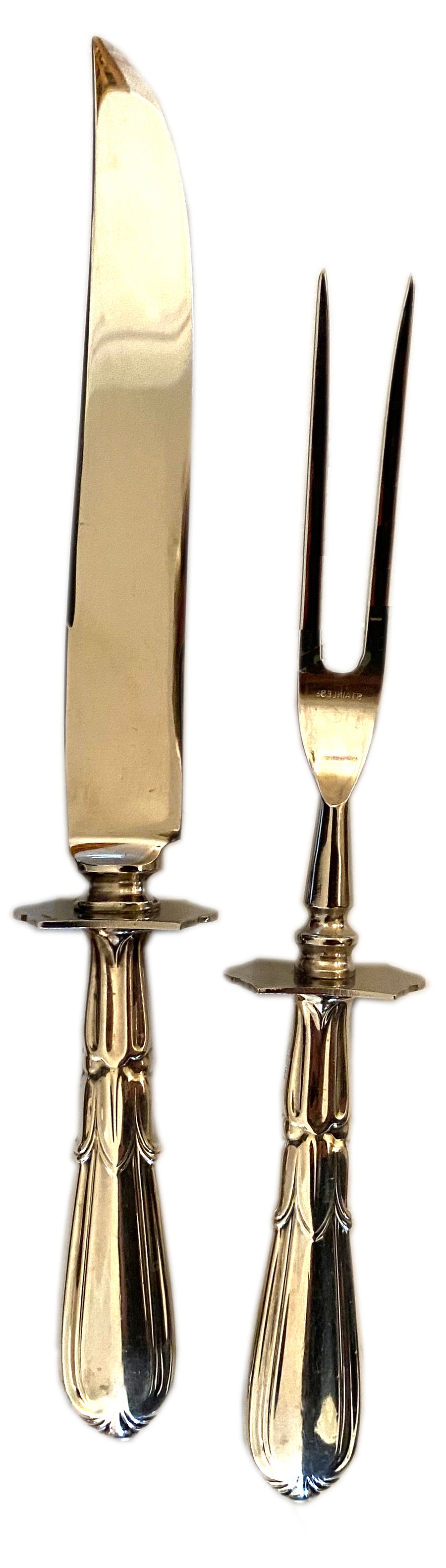 Sterling Silver hollow handle with stainless implements Carving Set 2-PIECE (KNIFE 10" AND FORK 8 3/4") in the pattern "Troubadour" by Frank Whiting.