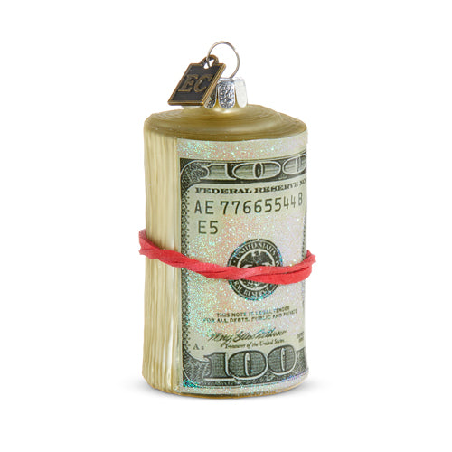 Say it with sparkle! This playful “Thanks a Million” ornament from the Eric Cortina Collection adds a cheeky twist to your holiday tree. Crafted from glass and detailed with a glittering roll of $100 bills secured by a bright red band, it’s the perfect gift for clients, coworkers, big spenders — or anyone who deserves a million thanks.