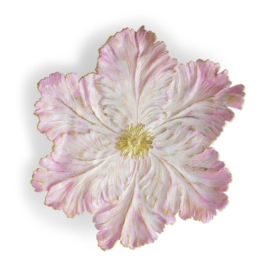 The Tulip Collection celebrates rebirth as the ground begins to thaw and new life flourishes. Inspired by the feathery petals of the Parrot Tulip, each petal ripples as if the flower is about to take flight. Symbolic of perfect love, these expressive blooms tell a story of life: of passion, grace, and new beginnings. The Tulip Collection features elaborate sculpts in a modern, lyrical way. The white enamel and gold finish reflects the effect of light and shadow that caress each flower as the world begins to wake.