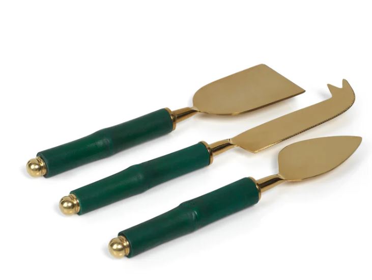 Bamboo & Matt Gold Steel Set of 3 Cheese Tools
