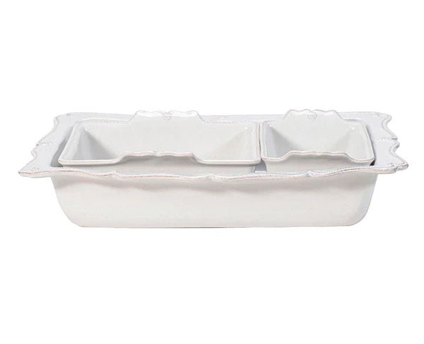 This space-efficient nesting trio is a triumph for home bakers! Practical and pretty, this oversized 17” rectangular baker features a beautiful scalloped edge reminiscent of a ruffled apron, and can snugly accommodate our loaf pan and square baker, to easily fit all three together in your cupboard. Perfect for beloved holiday recipes and for feeding a crowd -- and those lovely handles make taking these dishes from the oven to the table…and easy as pie!