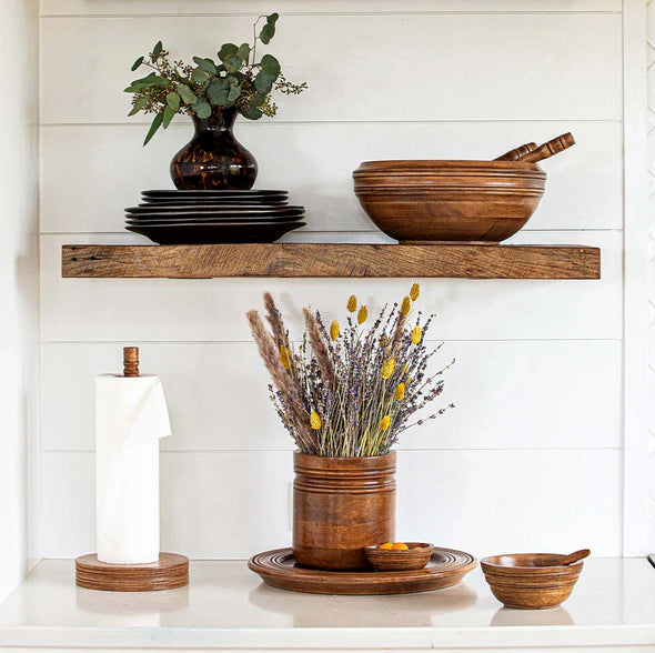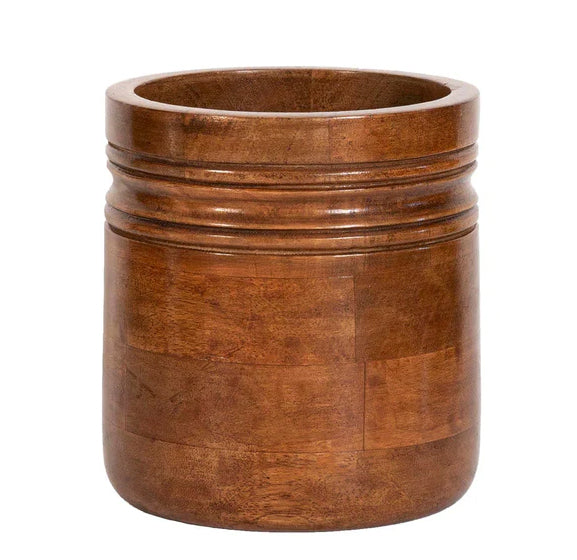 An elevated version of a kitchen essential, designed to bring natural beauty and textural warmth to your countertop. Made of hand-turned mango wood in a sculptural design, this utensil crock is a soulful neutral that keeps things tidy in modern to traditional spaces alike. Couple it with our paper towel holder for a cohesive set.