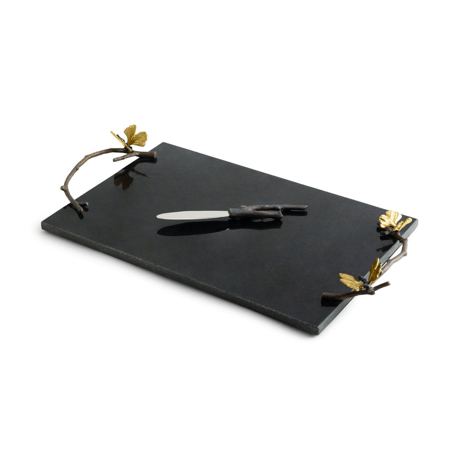 The Butterfly Ginkgo Collection celebrates the representation of flora as fauna. Michael's fascination with a particular type of ginkgo tree , the Ginkgo Biloba, or "Butterfly Ginkgo", which grows with a double leaf reminiscent of a butterfly's wings, gave rise to a fantasia image of the plant. Executed at the highest level of handcraftsmanship, each piece is rendered in solid brass with hand etched cocoon-shaped vessels. The pieces in the collection are a tour de force of the handcrafted process, capturing the poetic spirit that is so deeply indicative of Michael's work.