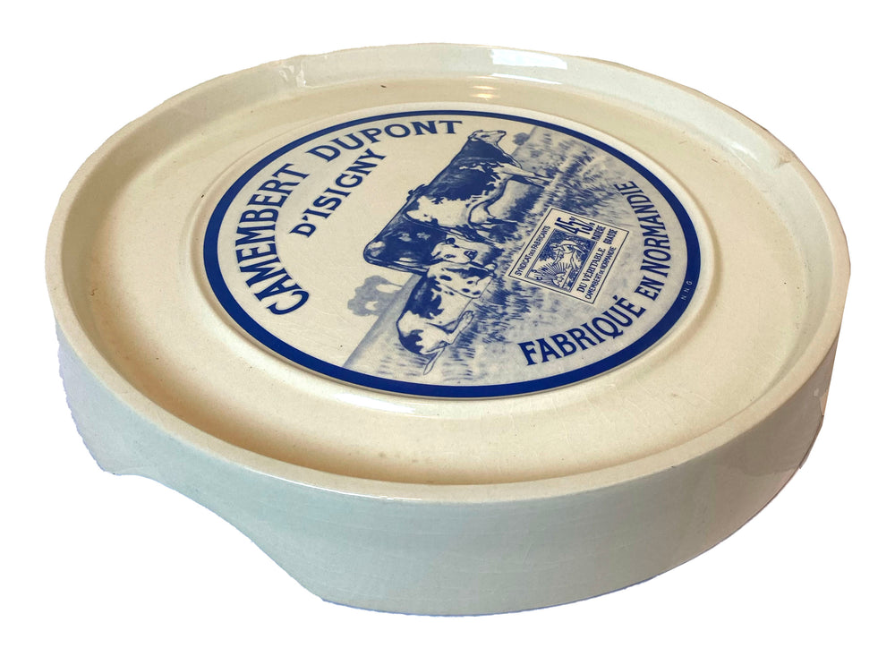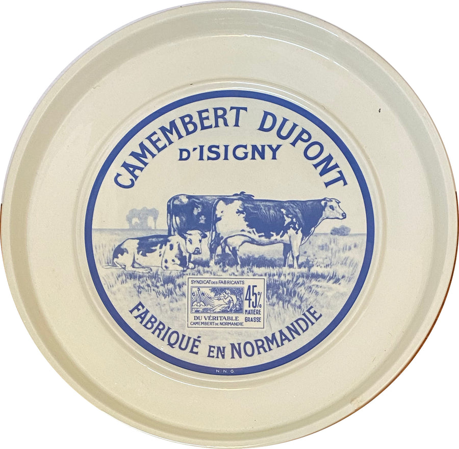 Celebrate the art of French cheesemaking with this charming vintage-style ceramic cheese plate, featuring a classic Camembert Dupont d’Isigny label in cobalt blue. With its raised rim and generous size, it’s perfect for serving cheese, charcuterie, or even as a kitchen display piece. A delightful nod to Normandy’s rich dairy tradition.