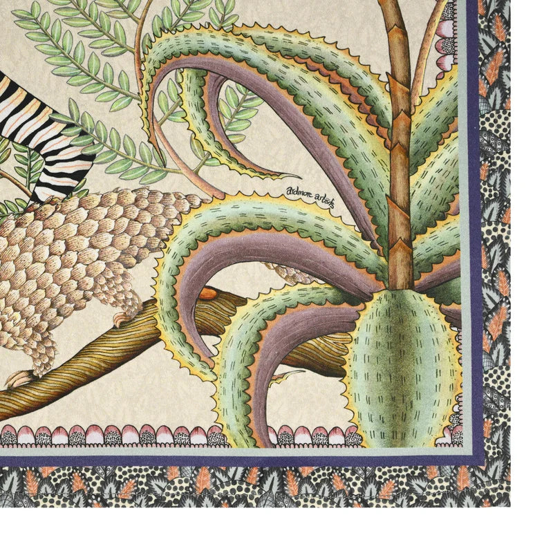 Immerse yourself in the exquisite realm of Ardmore with Thanda Stripe Napkins in Magnolia or Stone. Each piece in this luxurious pair is more than just a napkin, it's a masterpiece that weaves the untamed spirit of Africa into your dining experience. Crafted from premium 100% cotton and adorned with vibrant scenes of wildlife, the design features the shy zebra and unique pangolin.