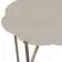A simple iron frame supports the unique flower-shaped limestone top, appearing to cradle it in place. This table is an airy design in a classic neutral color palette. Limestone is a natural material. Differences in color and pattern should be expected and celebrated.