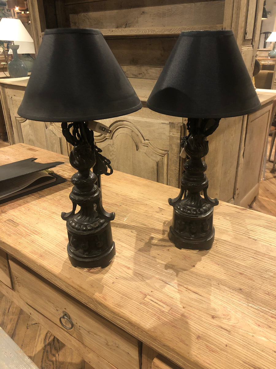 Pair of Cobalt and Bronze Mid-Century Lamps