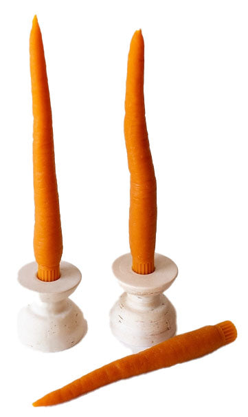 Discover the unique charm of these Carrot Beeswax Candle Tapers. The mold was created out of real carrots! These candles are a delightful fusion of artistry and nature. Made from pure beeswax, they emanate a natural, sweet aroma. Their slender design not only captures the eye but also ensures a consistent and soothing burn. An ideal centerpiece for your dining table or a thoughtful gift for nature lovers. Elevate your ambiance with this beautiful conversation piece.