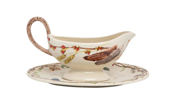 This Forest Walk sauce boat is perfectly suited to house your most mouthwatering gravies and decadent sauces. With a gorgeous faux-wood handle and delightful woodland accents scattered across both pieces, this set will serve as a mini centerpiece anywhere it lands on the table.