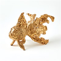 A cute, whimsical angelfish sculpture made of cast iron with gold leaf finish.