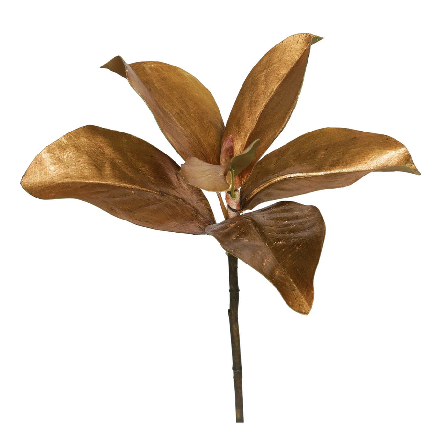 Add a touch of gilded elegance to your holiday arrangements with this striking Gold Magnolia Leaf Pick. Finished in a warm, metallic gold-bronze tone, each lifelike leaf adds rich texture and festive shimmer to wreaths, garlands, mantels, or floral centerpieces. At 14 inches tall, it’s the perfect accent for seasonal decorating—versatile enough for traditional, modern, or rustic holiday styles. A beautiful way to elevate your greenery with just the right amount of sparkle.