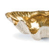 A large clam shell with a gold interior works as a decorative bowl with beachy charm. Position on an entryway table or living room table to hold objets or other important items.