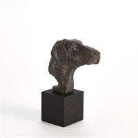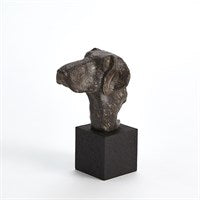 This Labrador retriever sculpture is made of cast iron with a natural finish on a flamed black marble base.