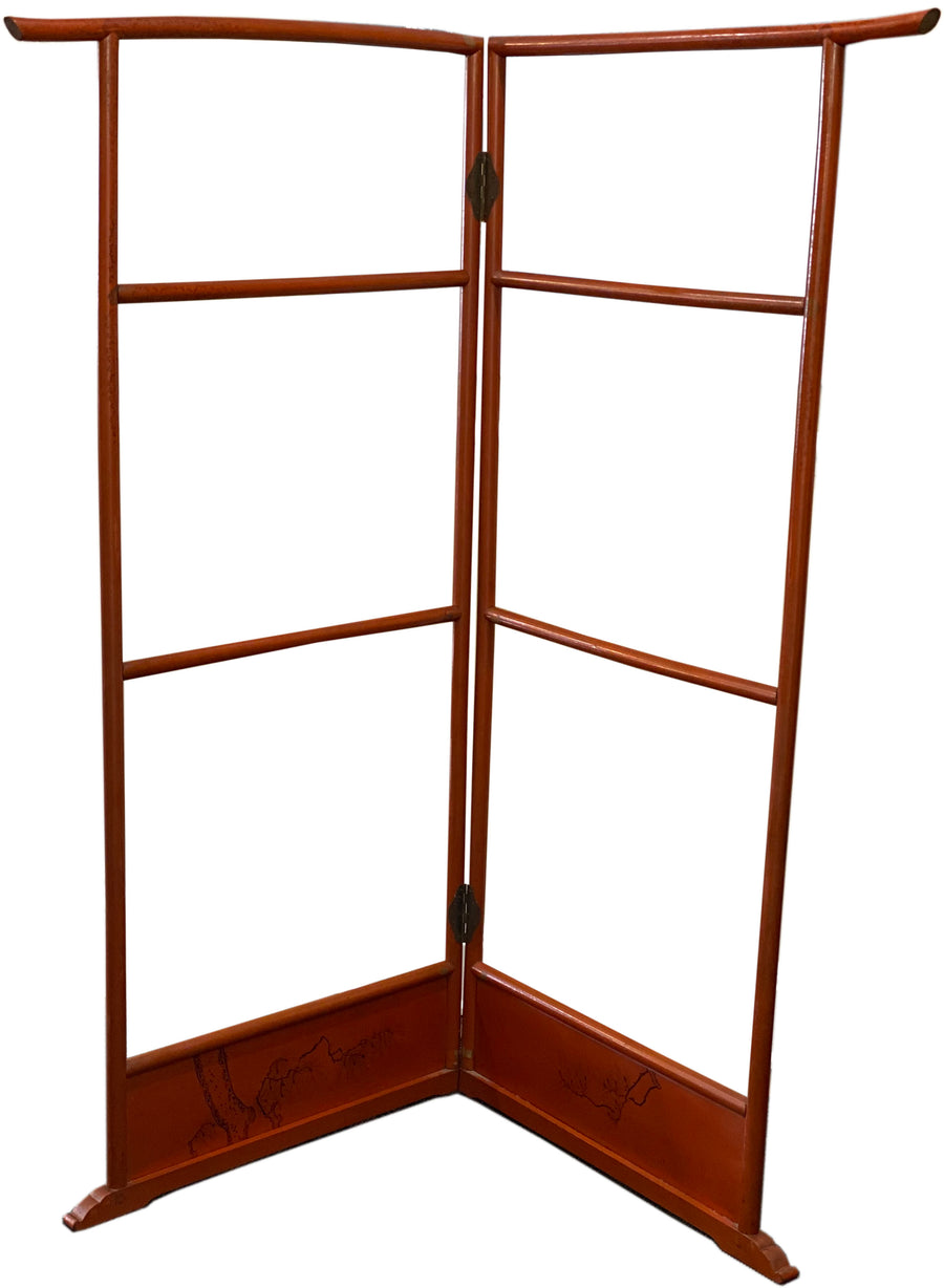 Gorgeous vermilion color and a delicate gold design on this vintage kimono holder.