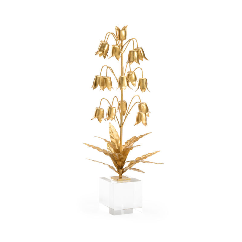 Gold finished flowers in the shape of Lily of the Valley, mounted on crystal base.