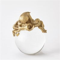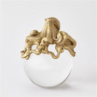 The majestic Octopus on Orb is made of cast brass and crystal and brings a sense of ocean opulence to any surface. Available in Brass and Nickel. Please do not place in direct sunlight.