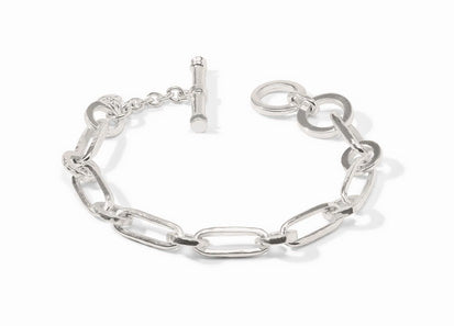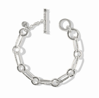 Shimmering, lightly-hammered oval links finished with a toggle closure. Two toggles for adjustable length.