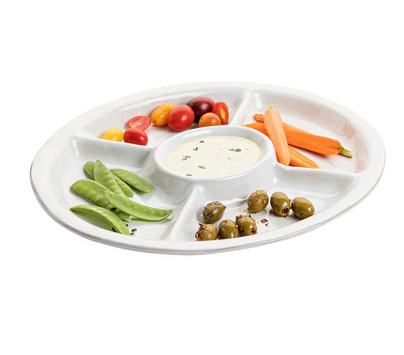 Sleek and simple with a lustrous glaze, this platter makes an ideal backdrop for whatever fruit, veg, and dips you want to display for snacking on game day or for cocktail hour.