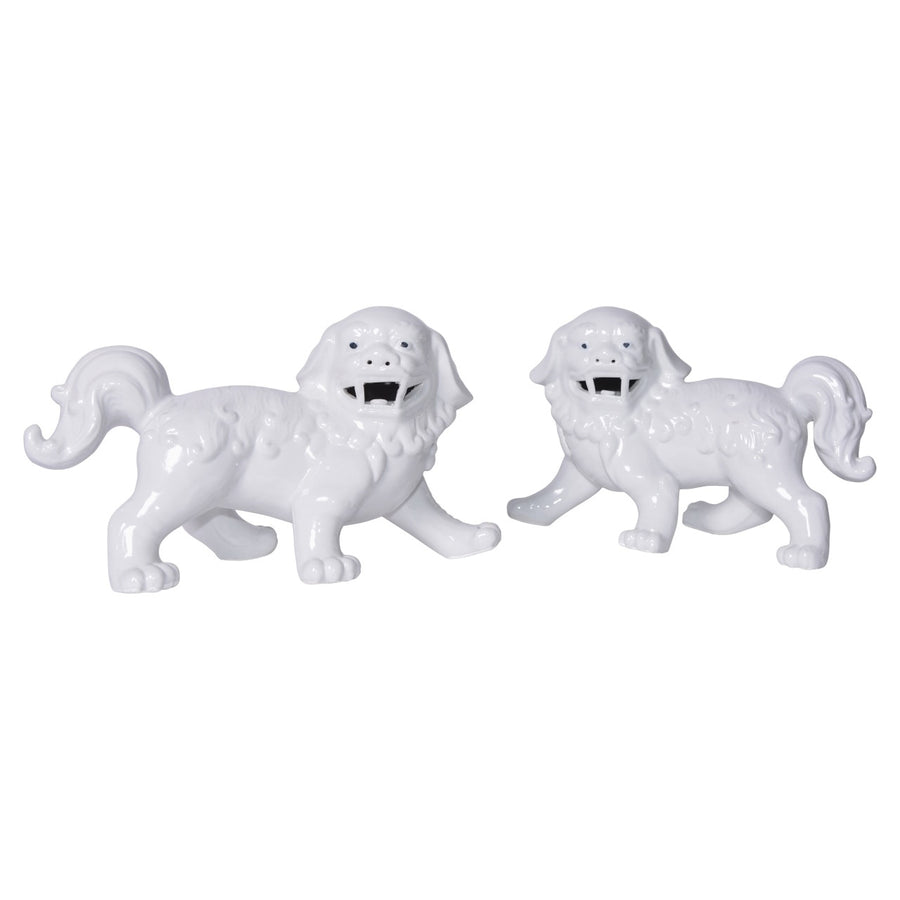Porcelain Walking Foo Dog Pair White